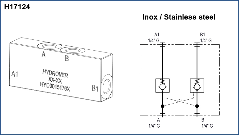 New H17124 - Inline double pilot operated check valve in stainless steel 1/4” G