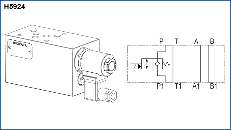 New H5924 - Cetop 5 modular poppet type solenoid operated directional valve between P1 and P