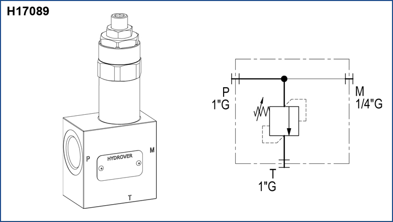 New H17089 - Inline relief valve / P-T 1” G