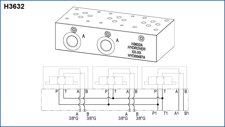 New H3632 - Plate for adding two Cetop 3 station / side A-B ports 3/8” G