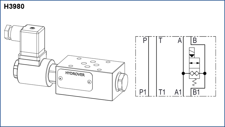 New H3980 - Cetop 3 modular poppet type solenoid operated directional valve between A and B / Float