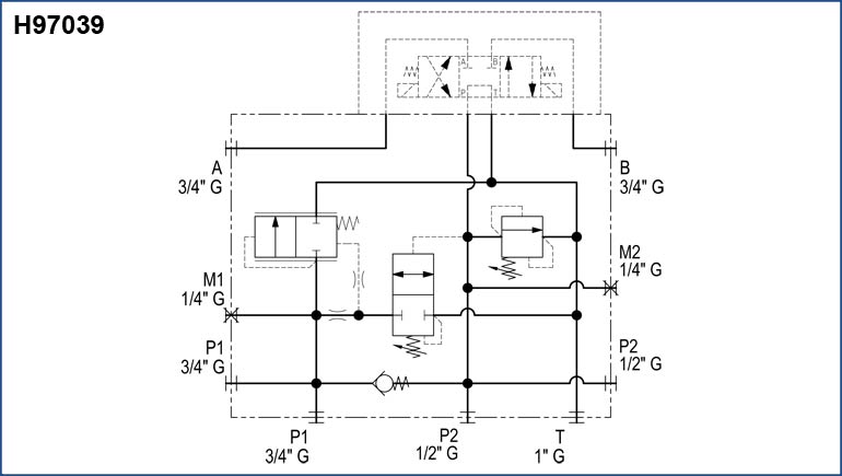 Upon reaching the pressure setting of the unloading valve, the P1 line is sent to T.