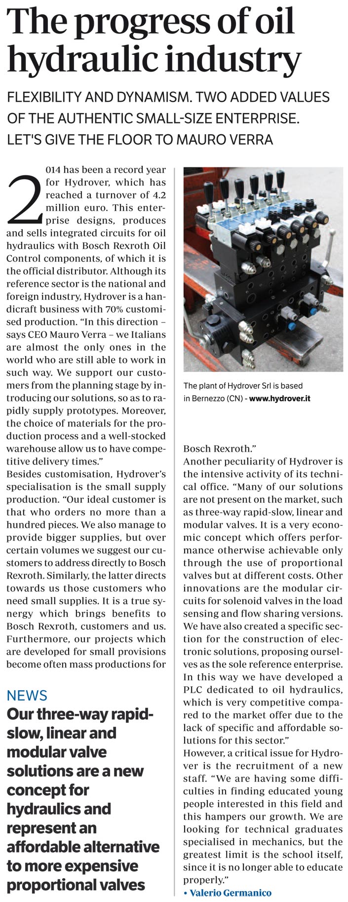 The newspaper Industria Expo have made an interview to the Hydrover managing director, Mauro Verra. The feature story was published in September 2015.