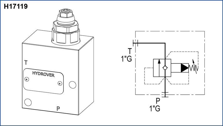 New H17119 - Inline relief valve and anti cavitation / P-T 1” G